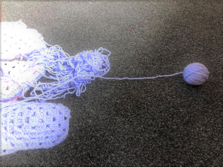 So I began to organise. To do jobs I’d been putting off, sort things that needed to be sorted. One of which was a bag with a crochet blanket in it. A friend at Church had given it to me, as it had started to untangle. The blanket was no longer needed, and my friend had wondered if I could salvage any of the yarn. The first step to this would be untangling the mess of already tangled yarn, before gently ‘frogging’ the rest (frogging being the crocheters term for undoing your stitches, commonly understood to have come from the sound of ‘rip it, rip it’). But having been at it for hours already, did I really have it in me to start on a time consuming, fiddly and always frustrating job?!
