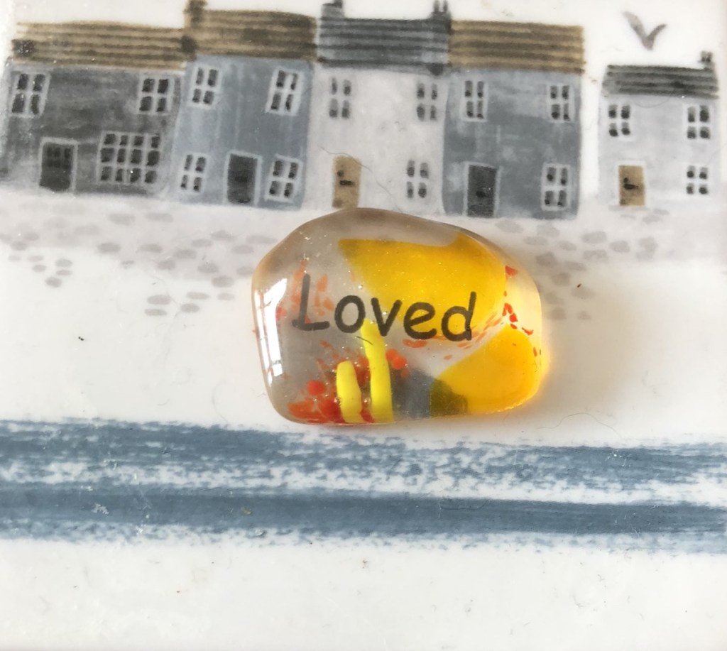 Even single words have power. I discovered this all too clearly at Greenbelt festival this weekend when faced with a table full of glass pebbles printed with words (see Gillam Glass). They were beautiful, tactile and unique. I bought a handful of them, and each day have picked one to contemplate as a prayerful practice. Yesterday, on a day when the toughest chapter of this year finally concluded, I picked ‘Loved’.